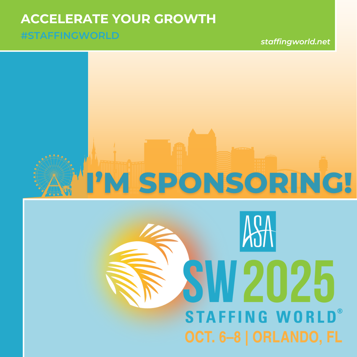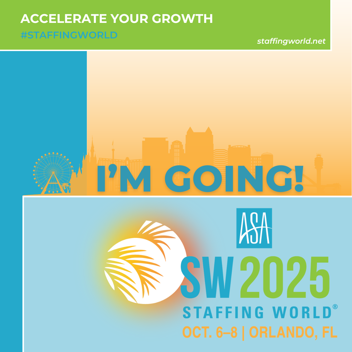 Congratulations! You’re going to Staffing World 2025 at the Gaylord Palms in Orlando, FL. Share the exciting news with your peers on social media and encourage others to join you! Let your clients and business partners know. Tell your fellow ASA members to meet up with you there.